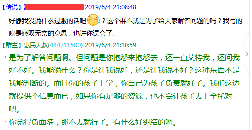 昨天,在QQ群里有一个家长一直在艾特我,一直问我华兴学校怎么样,还问我华兴学校网上那么多负面什么什么的。我一烦就发了一堆东西: