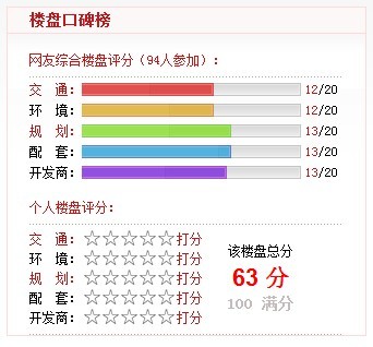 网友综合楼盘评分(94人参加):得分63分。