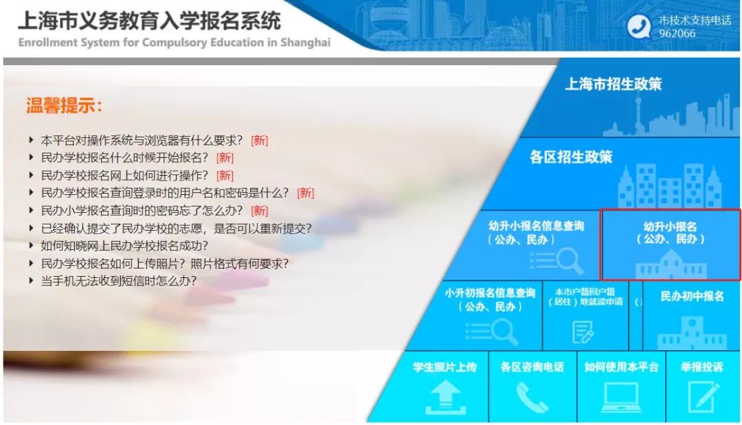 在报名系统首页点击“幼升小报名”即可进入报名,报名时公办和民办只能二选一: