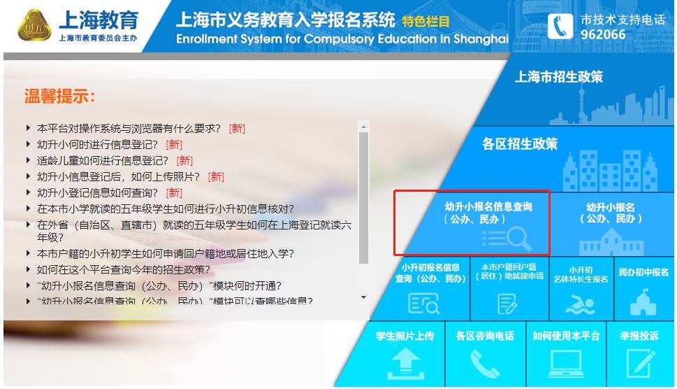 “幼升小报名信息查询(公办、民办)”模块将于4月8日上午8:00开通,根据短信中的用户名以及初始密码,就可以登录查询“幼升小”的相关信息。包括:儿童入学信息登记成功通知、公办小学报名完成通知或民办小学报名完成通知、民办小学面谈通知、民办小学录取确认通知以及公办小学入学通知。