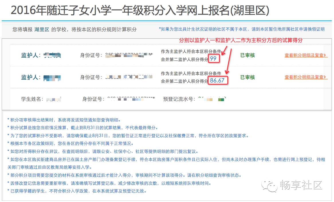 此时系统会分别以监护人一和监护人二作为主积分方进行试算得分,因此家长们会看到两个分数。
