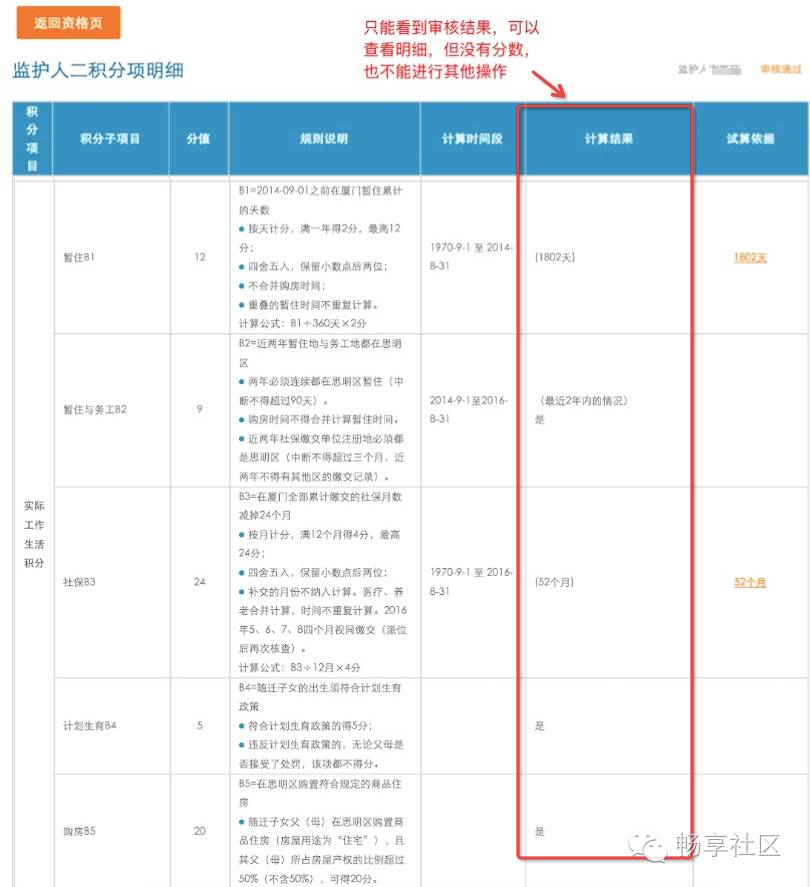 如果家长点击“积分试算情况”后出现如下页面,说明分数虽然还没有试算出来,但是各项审核结果已经可以先查看到了。