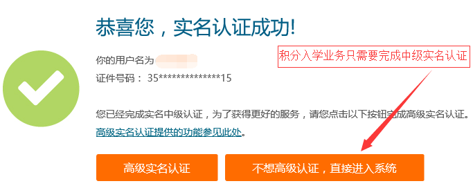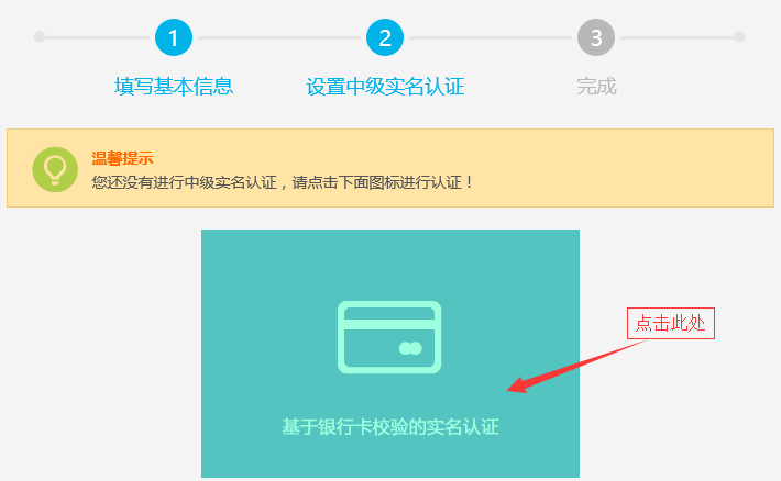 (2)初级注册认证后网页会进入中级实名注册认证界面: