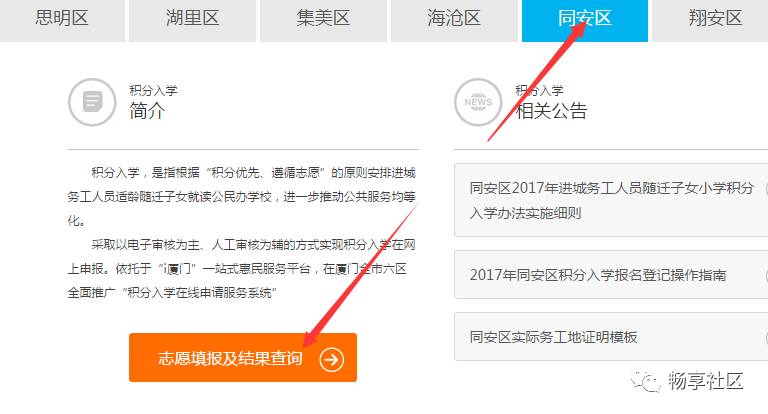 同安区2017年积分入学志愿填报指南