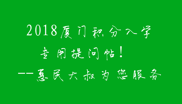 惠民大叔:2018厦门积分入学专用提问帖!