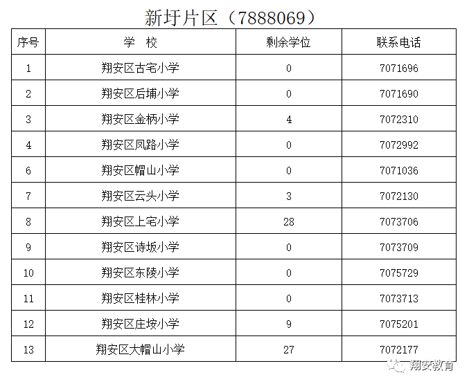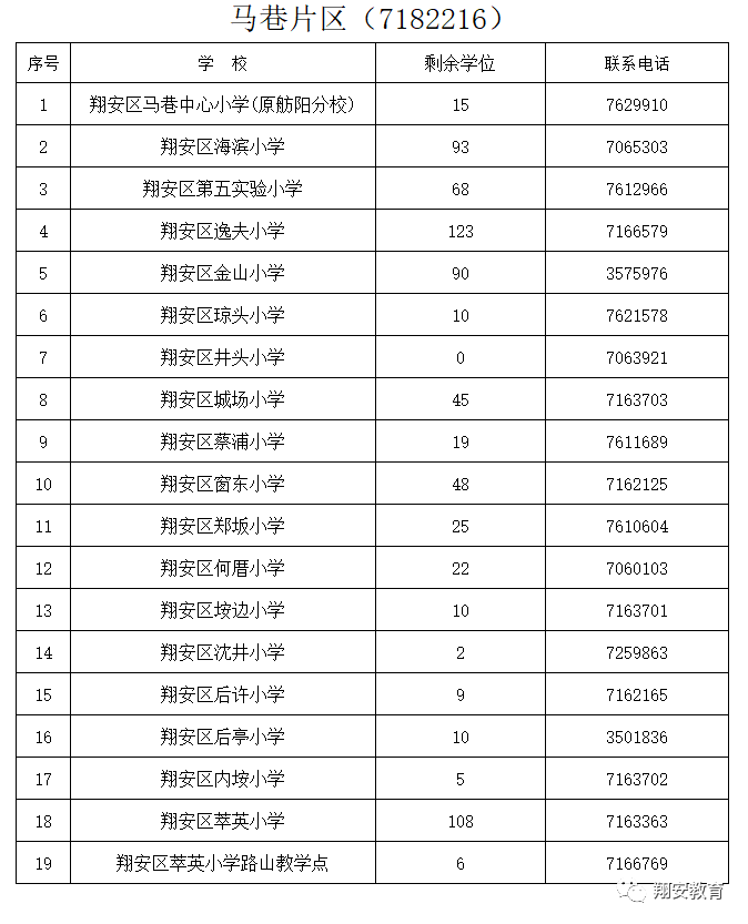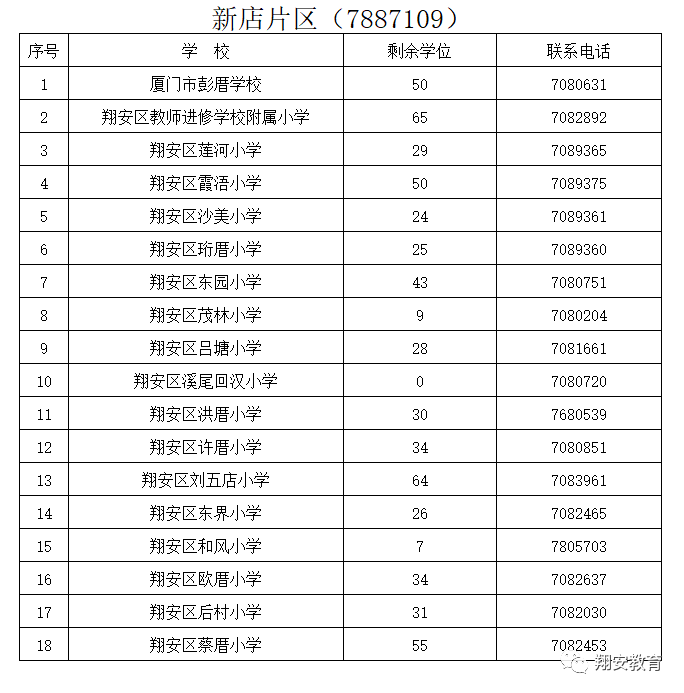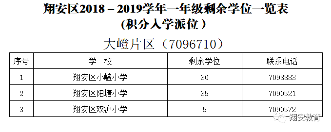 翔安区2018年积分入学派位学校和空余学位公布