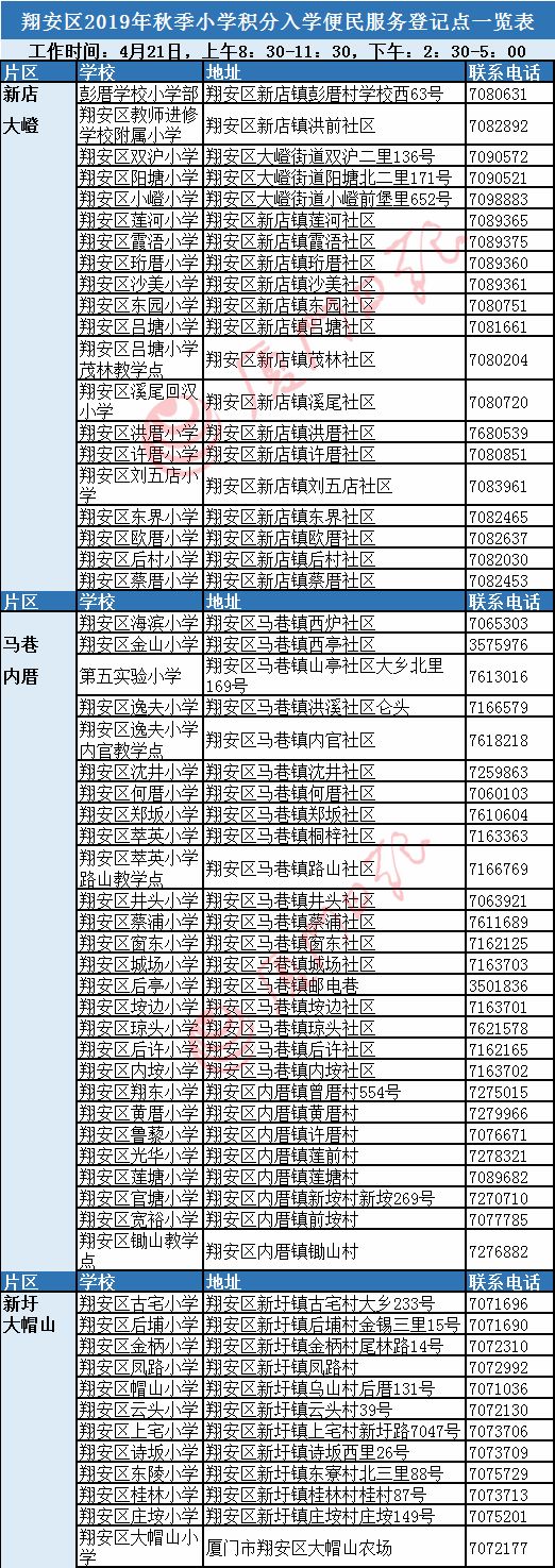 (三)随迁子女父或母一方报名前在翔安区连续居住6个月以上,即2018年11月1日至2019年4月30日必须在翔安区居住。