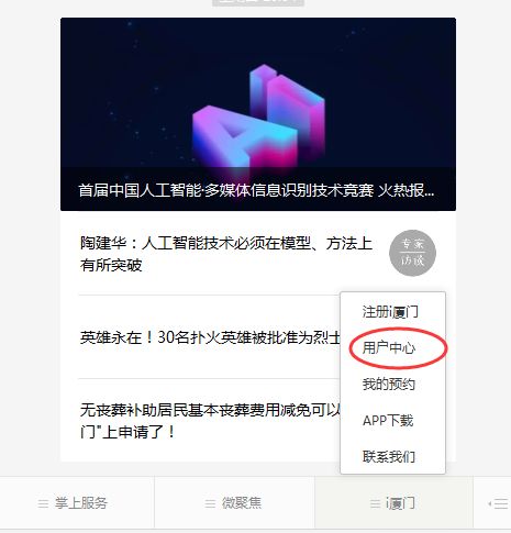 2、如果你想通过微信版去找回也是可以,打开ixm0592的微信公众号,找到用户中心这个栏目,如下图:
