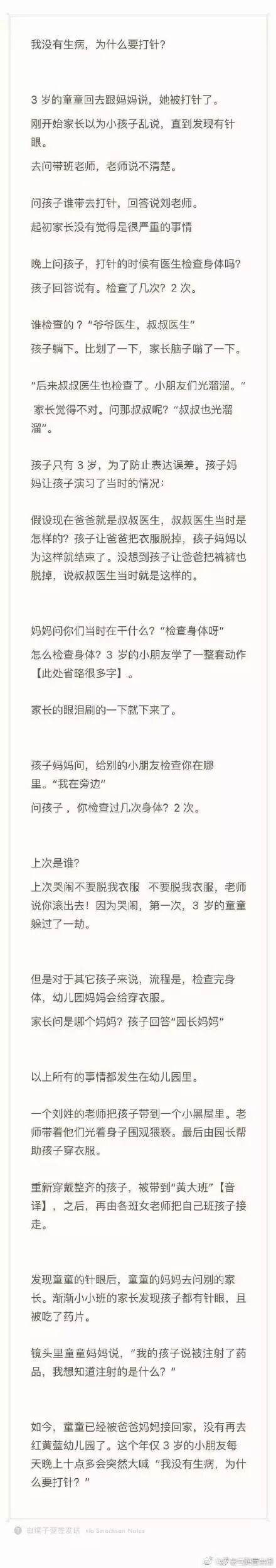 而就是这所幼教集团下属幼儿园,在今日被十多名家长指责“虐童”,幼儿在园期间遭遇老师扎针、喂不明白色药片,并且被赤裸罚站,而这些行为的“重灾区”正是该园国际小二班与小小班。