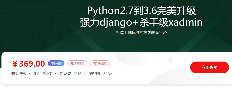 另一个就是慕课网的,关于python的web开发django的进阶教程,你看图上,教程是369元,学习人数是3524人,那小编用计算器算一下,369X3524=1300356,不用数了,收入是130万。一个录播课程收入130万,还不是最热门的,想想这收益应该比玩币来的稳定多了吧。