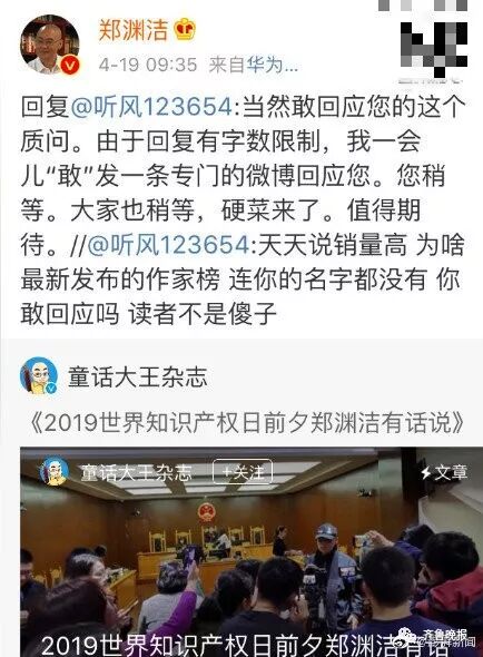第13届中国作家榜日前发布 2018年中国童书作家榜, 但赫赫有名的“童话大王” 郑渊洁却没有入榜, 有网友因此质疑郑渊洁童书的销量。 郑渊洁之后在微博发长文: 并非自己没入榜, 当他知道中国作家榜制榜方 首次将童书作家销售排名, 从中国作家榜主榜单中剥离出来后, 他主动拒绝入榜! 原因是:他认为—— “中国的童书销售泡沫极大,甚至和不法行为有牵连。” 那么, 他所说的“不法行为”是什么? 郑渊洁在微博上表示: 根据《中华人民共和国义务教育法》第二十五条规定,任何人不得进入中小学校园推销商品。图书也是商品。但是有一些童书作者打着讲课的幌子,和书店、学校勾结起来进入学校占用学生上课时间向学生兜售童书。在十多年前,我曾经也被出版社拉着去学校,我本来以为只是讲课,后来才发现其中的猫腻。于是再也不去学校卖书……我告诉榜单制作方,我不能和违法到中小学卖书的童书作者出现在一个“童书榜”单上,这对我是奇耻大辱。制榜方选择了尊重我的决定。于是我在近日公布的2018年中国作家榜单上消失了。 他甚至在文中指出,“中国作家童书榜”第三名曹文轩的2700万元,销售所得和进校售书有关,并晒出了相关学校的征订单图片。 资料显示,郑渊洁三年前就曾发文批评,一些作家到中小学打着讲课的幌子卖书,校方利用权威动员学生“自愿”购书,数量巨大。这次算是“老调重弹”。 媒体报道说, 北大教授曹文轩回应: 暂时不愿意发声, “让大家去判断吧”。