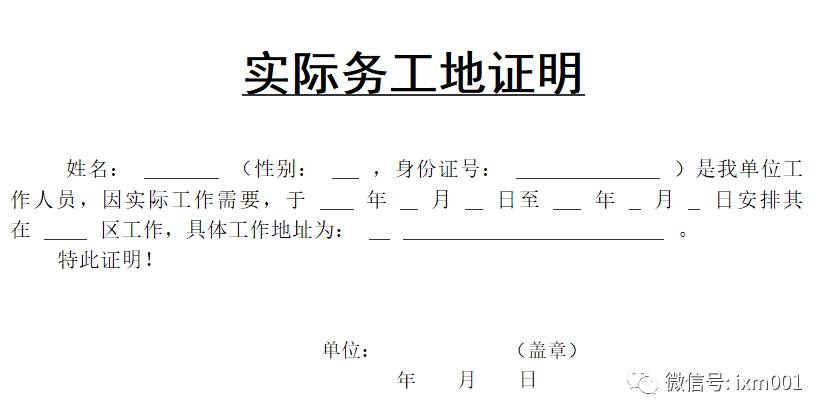 8、湖里区实际务工地证明的格式: