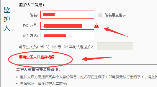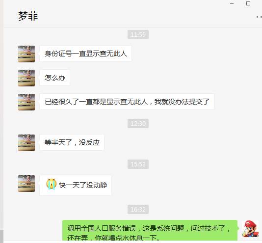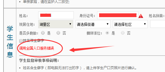 但没想到的是,碰到了【调用全国人口服务错误】与【查无此人】的问题。