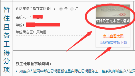 就像上面这个家长,本身在湖里区报名,然后系统显示出来的也是湖里区,那不需要开实际务工证明。