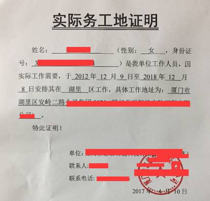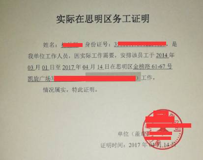 但有些家长暂住证是在湖里的,但社保显示是思明区的,但实际我本人是在湖里上班的,那就需要开一个证明,就叫实际务工证明,证明你是在湖里上班。