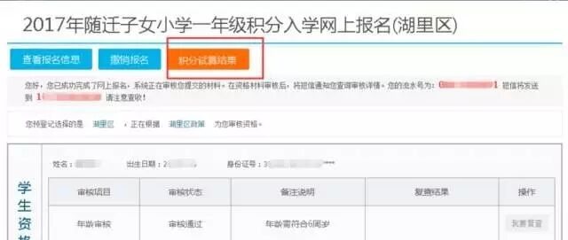 如果“积分试算情况”按钮为灰色,无法点击,说明在系统里登记的监护人都不符合本区的积分入学基本条件(具体哪项不符合可在系统里查看)。