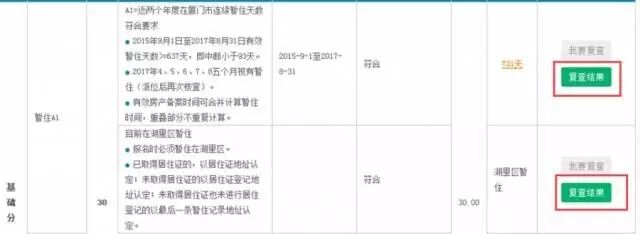 复查结果出来后,申请人可以点击积分项右侧的绿色“复查结果”按钮,查看复查结果。