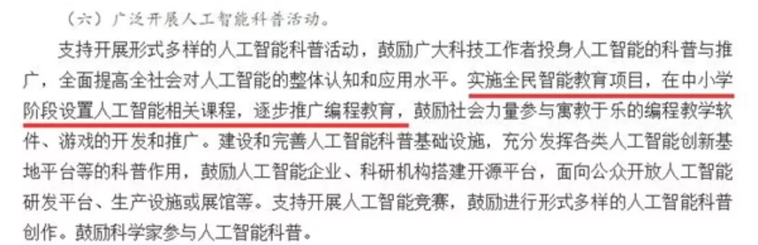 国务院:中小学要设置人工智能课程 推广编程教育