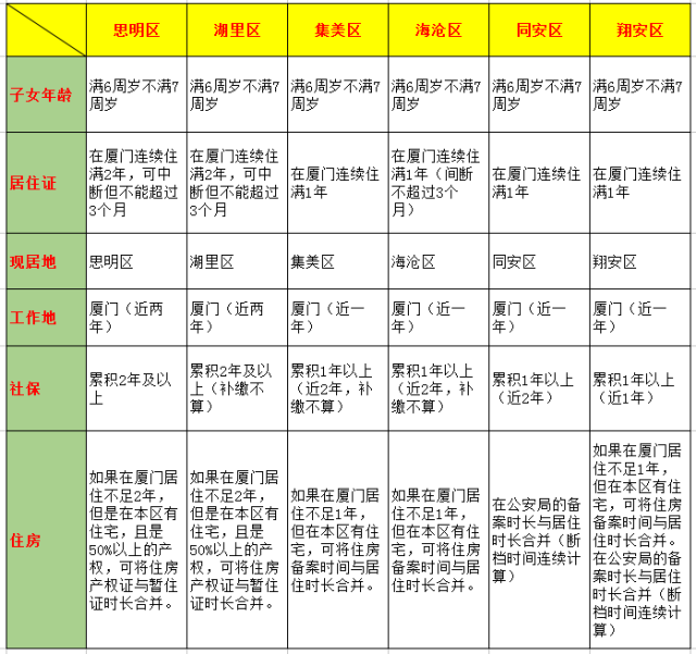 简单的说就是:岛外要求厦门居住证且目前在当前区域办好居住证,社保只要厦门的近2年累计有一年以上就可以。