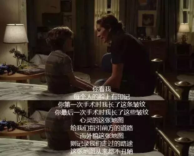 她说:“每个人脸上的痕迹都是他一生走过的路,就像她脸上的皱纹一样,都是再自然不过的东西。”