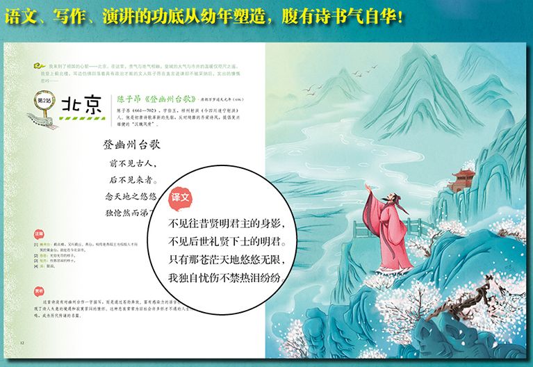 这本书的目的,就是让小读者能由诗入景,由景生情,对古诗词能进行理解性的记忆,而且在背诵古诗词之余,还能对地大物博、历史悠久的祖国有所了解,拓展知识面,给小读者带来不同一般的阅读体验!