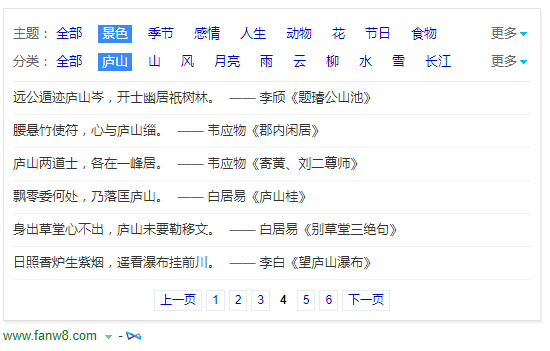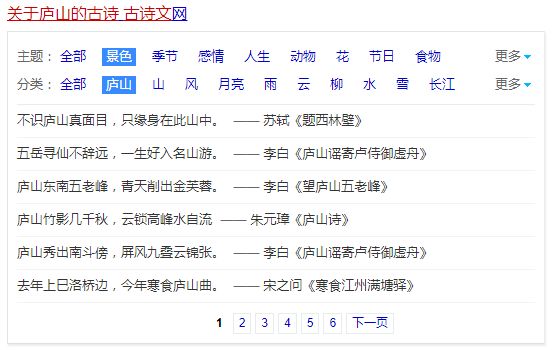 比如,我们想组织一场庐山的游学营,我们先找出关于庐山的古诗有哪些: