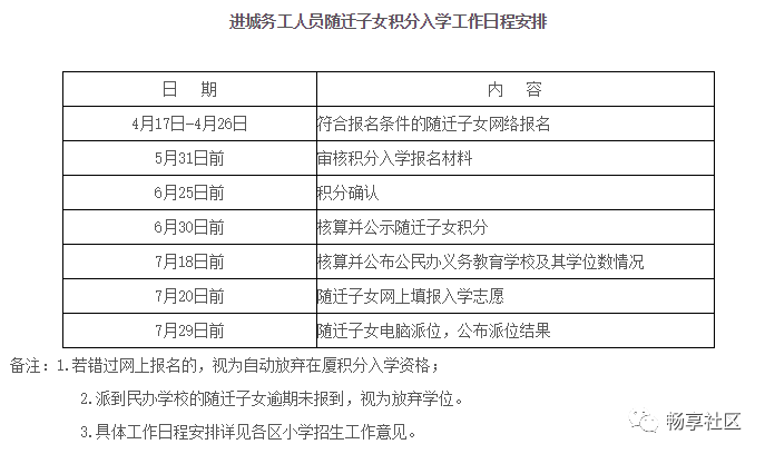 所以官方发布了具体的工作日程表,这个工作日程是安排积分入学的第一步动作,让大家有条不紊的按步骤操作。