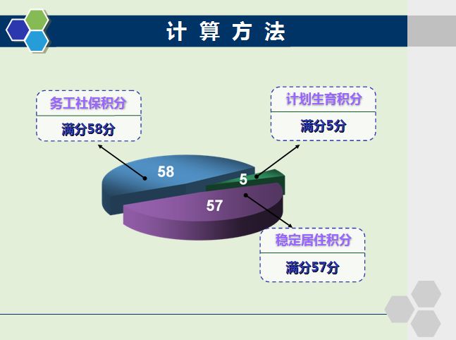 务工社保积分(58分)+ 稳定居住积分(57分)+ 计划生育积分(5分)=120分