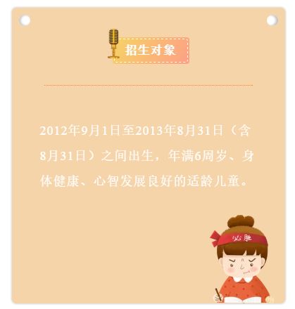 招生对象是:2012年9月1日至2013年8月31日(含8月31日)之间出生,年满6周岁、身体健康、心智发展良好的适龄儿童。