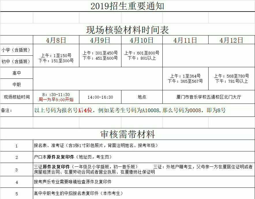 在群里家长反馈的消息,3月底在厦门音乐学校家校平台报名成功的家长,在平台打印报名表,然后按着自己的报名序号,在相对应的时间去学校审核材料。