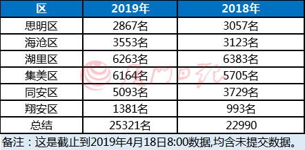 昨天,厦门招考老师发布了今年第一天报名的人数: