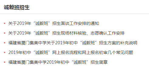 学校将在集美中学校园网中的多个栏目中发布最新动态,如校园公告、 “诚毅班招生”等栏目中,请家长及时上集美中学校园网查看。