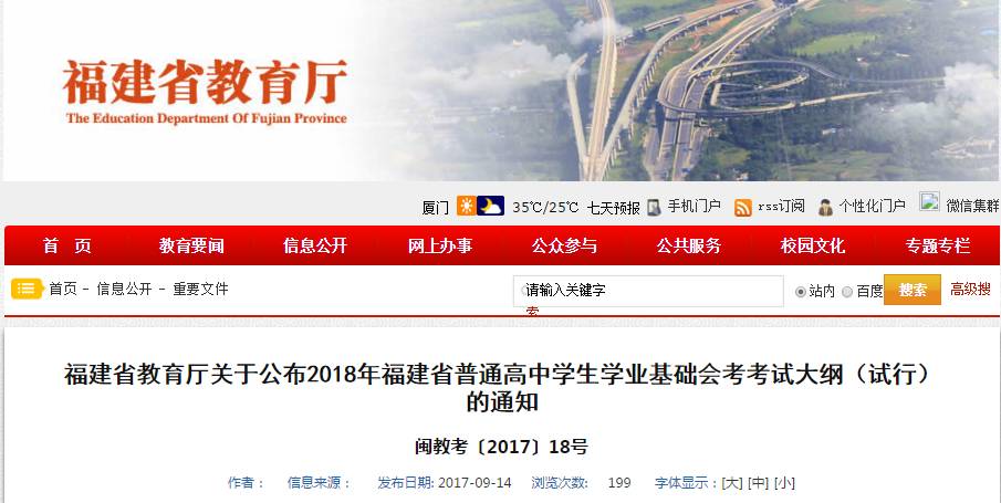 今年的高中会考部分学科的考纲有调整。 省教育厅昨日对外公布《2018年福建省普通高中学生学业基础会考考试大纲(试行)》。 网站截图 “学业基础会考”就是俗称的会考,总共有十门。