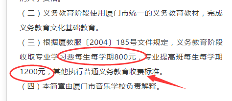 在招生简章中有介绍,专业学习费是800一学期,提高班是1200一学期,这是额外交的。其它费用执行普通义务教育收费标准。