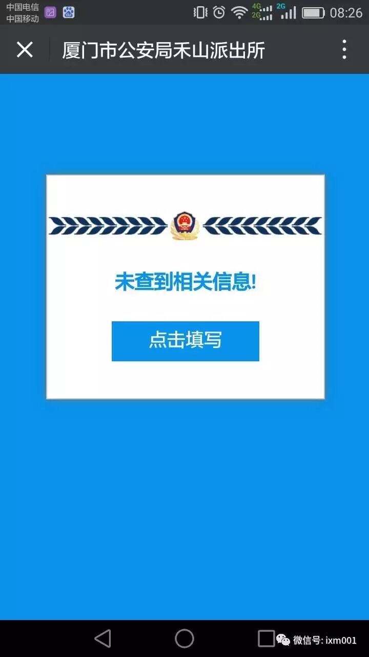 第二步,点击进去后,先输入自己的身份证查询一下,如果没查到,就显示未来查到相关信息,点击填写。然后把自己的各项资料填入进去就可以。